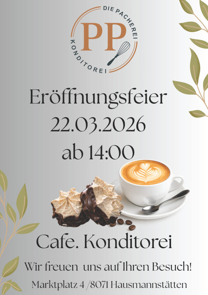 Mir der Eröffnung am 22.03.2026 setzen wir als Team den nächsten Schritt, wir eröffnen nach drei Monaten Umbau das Café DiePacherei am Hauptplatz Hausmannstätten.